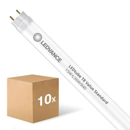 Confezione Multipack 10x Ledvance Tubo LED T8 Value (EM/Mains) Standard Output 15W 1800lm - 840 Bianco Freddo | 120cm - Sostitutiva 36W