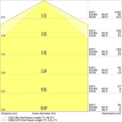 ![]() Il codice colore è una combinazione di resa cromatica (CRI) e colore della luce (Kelvin). La prima cifra indica la resa cromatica (1 = resa del colore molto bassa, 9 = massima resa del colore), mentre la seconda e la terza si riferiscono al colore della luce. Esempio: il codice colore 830 indica una buona resa cromatica (8) e luce bianca calda (3000K). |