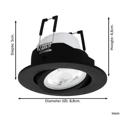 Descrizione Eglo Faretti LED Saliceto-Z Aluminium Nero 4.7W 440lm - 827-865 Regolabile Bianca + RGB | 88mm - Ritaglio 68mm - IP20 - Zigbee Dimmerabile