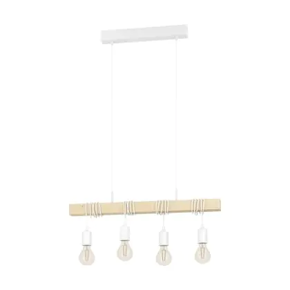 Eglo Luce Pendente Townshend Acciaio Bianca Legna | IP20 - Adatto per 4x E27