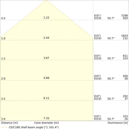 L'apertura del fascio luminoso indica l'angolo del fascio di luce proveniente da una lampada o lampadina. Si misura in gradi (D) e più piccolo è l'angolo, più piccola è l'apertura del fascio di luce.