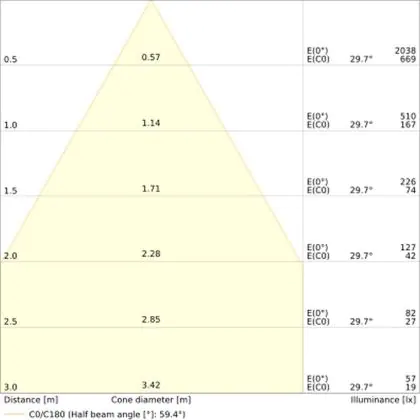 L'apertura del fascio luminoso indica l'angolo del fascio di luce proveniente da una lampada o lampadina. Si misura in gradi (D) e più piccolo è l'angolo, più piccola è l'apertura del fascio di luce.