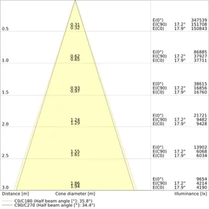 L'apertura del fascio luminoso indica l'angolo del fascio di luce proveniente da una lampada o lampadina. Si misura in gradi (D) e più piccolo è l'angolo, più piccola è l'apertura del fascio di luce.