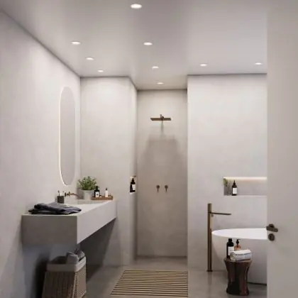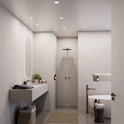 Questo apparecchio può essere usato sia in spazi interni che in spazi esterni, poiché ha indice di protezione contro l'ingresso di acqua e polvere IP65. In generale, un apparecchio con IP44 è resistente a schizzi di acqua e umidità, e può quindi essere installato in spazi esterni molto umidi o esterni riparati, come sono una tettoia. Un apparecchio che invece verrà esposto a intensi getti di acqua deve avere almeno IP54. Questa lampada ha anche un indice di resistenza a urti e impatti di