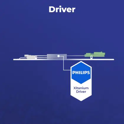 Questo pannello LED di Noxion ha dimensione 60x60cm, che lo rende perfetto da montare in un soffitto a griglia, ma può anche essere montato a superficie con degli accessori appositi. Inoltre consuma solo 28 W ma ha una potenza luminosa di 3700 lm, il che lo rende un perfetto sostituto dei tubi fluorescenti 4x18 W. I costi energetici saranno fino al 70% più bassi rispetto a un apparecchio convenzionale.