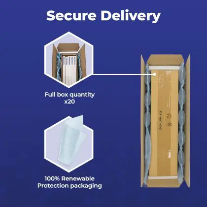 Questo prodotto ha una durata di vita di 50000 ore. In un ufficio questa lampada durerà più di 15 anni (52 settimane l’anno, 10 ore al giorno dal lunedì al venerdì). La durata della vita media utile è molto più lunga di un tubo standard, che ha una durata media di 24.000 ore.